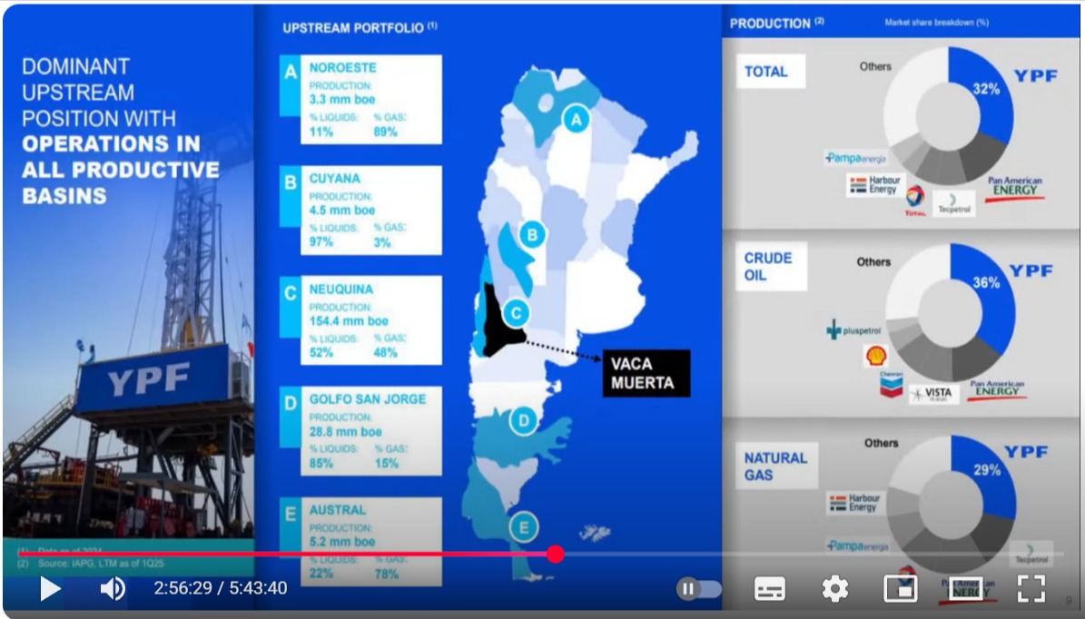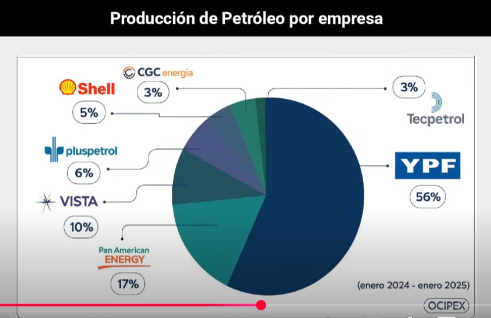 Sin embargo, el ex presidente expuso números que deben preocupar profundamente a todos los argentinos. Los balances más recientes de YPF muestran una caída brutal en la participación de mercado del 56% al 46%, principalmente por la venta de áreas maduras que producían casi 100.000 barriles diarios.