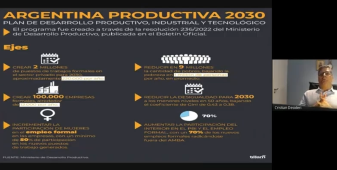 Algo así como 400+ personas (funcionarios, universidades públicas/privadas, institutos, terciarios) trabajaron en el documento más serio «de los últimos 30 años» según Desideri. Conducido por el ministro Matías Kulfas, el plan proponía para 2020-2030: